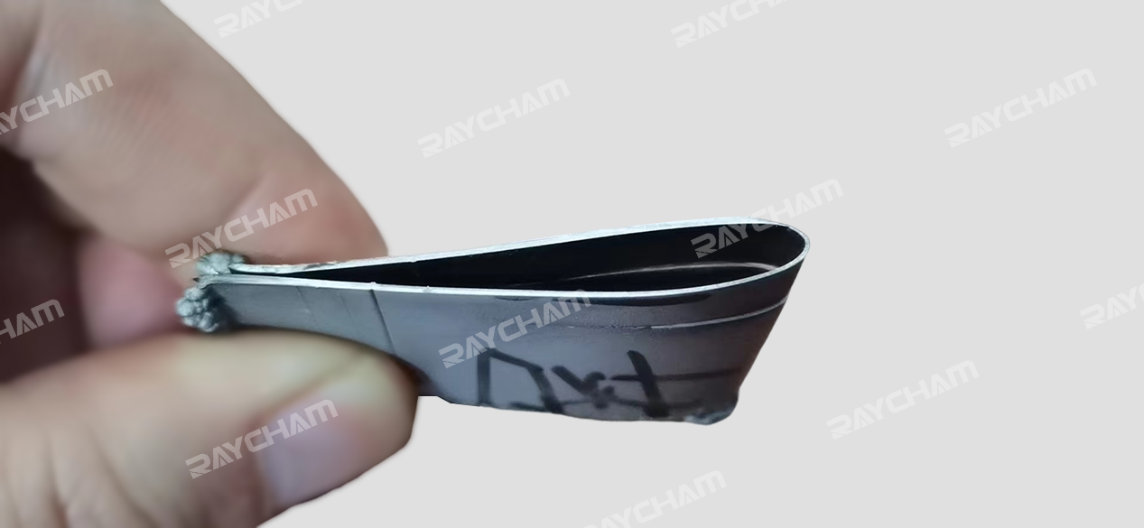 該零件為電鍍成型金屬材料,橫截面呈V字形,壁厚1mm左右。