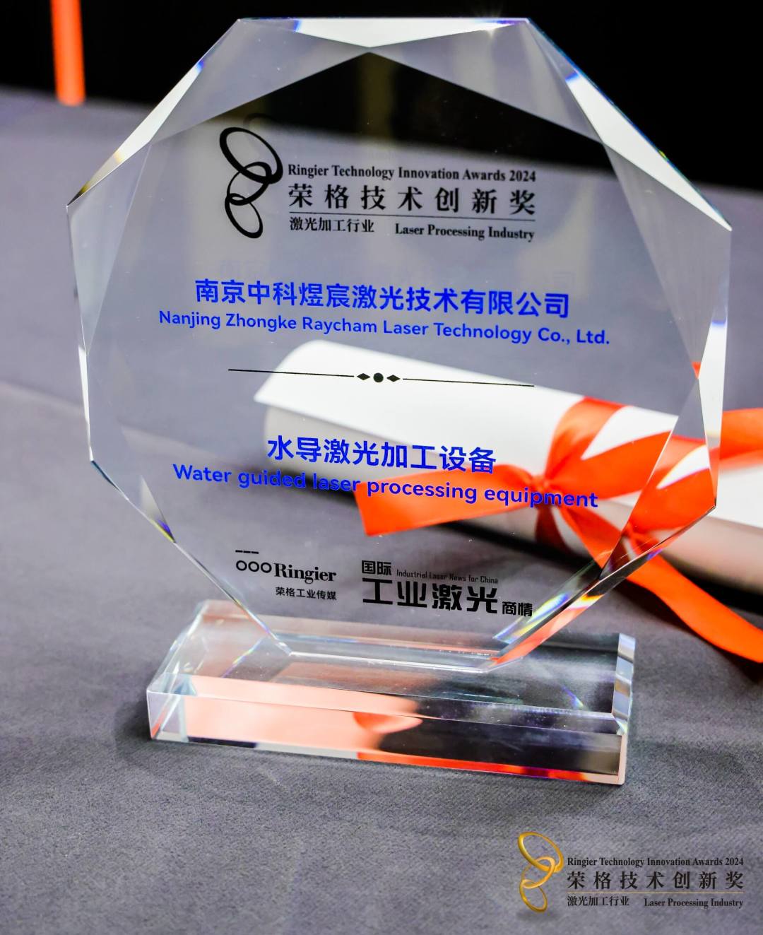5月15日,中科煜宸水導(dǎo)激光加工設(shè)備榮獲“2024激光加工行業(yè)——榮格技術(shù)創(chuàng)新獎(jiǎng)”。